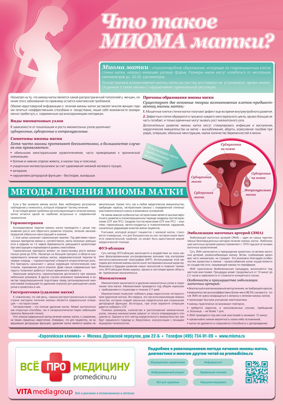 VITA media Group совместно с порталом PROMEDICINU.RU проводят информационно-просветительскую работу в лечебных учреждениях России (более 2000 лечебно-профилактических учреждений Российской Федерации).